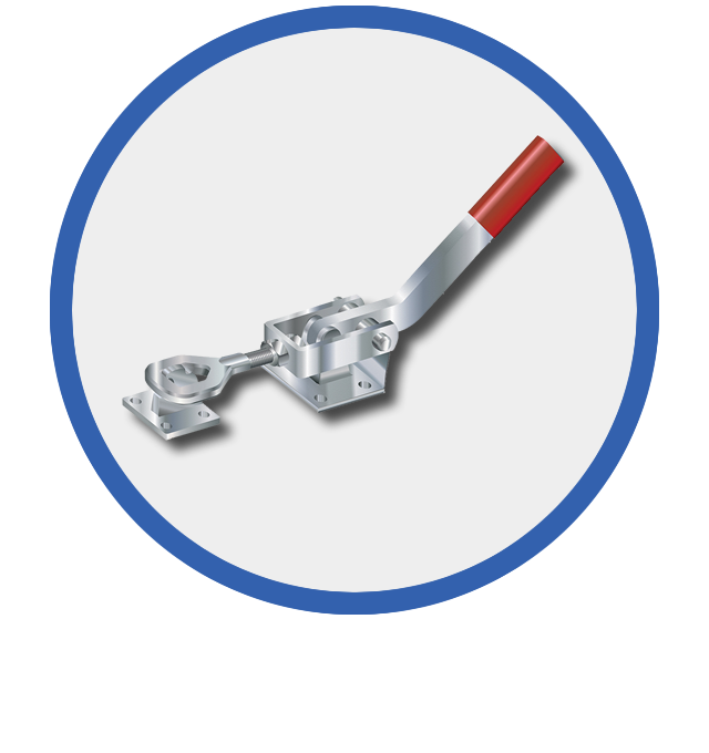 Attrezzi di chiusura rapida regolabili a leva per stampi per poliuretano, morsetti e tiranti per stampi rotazionali, stampi per casseri edilizi, per casseforme metalliche e per carpenteria in genere